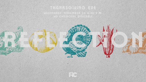 Join us as we gather with a couple local churches, Wednesday, November 26 at 6:30 p.m., here at FRC.